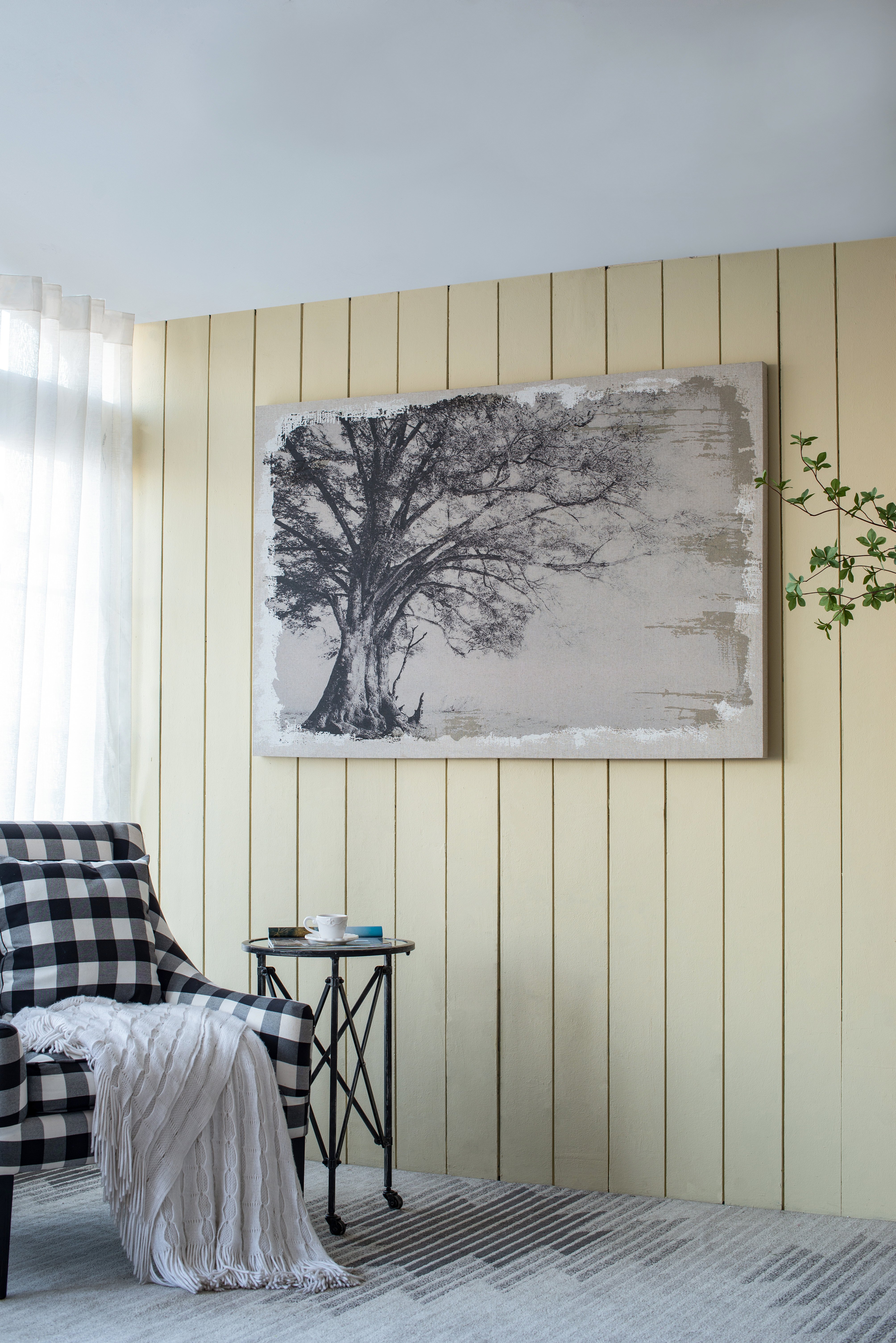 Calm and nostalgic, this print is a lovely piece of artwork for the nature-inspired interior. The charcoal-colored imagery stands out over a creamy canvas to provide a versatile neutral look that still offers plenty of warmth. This piece measures at 59″ by 39″ to make a dramatic statement in any room.