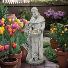 Long Face Buddha Fountain With Pump Glossy Gold Black