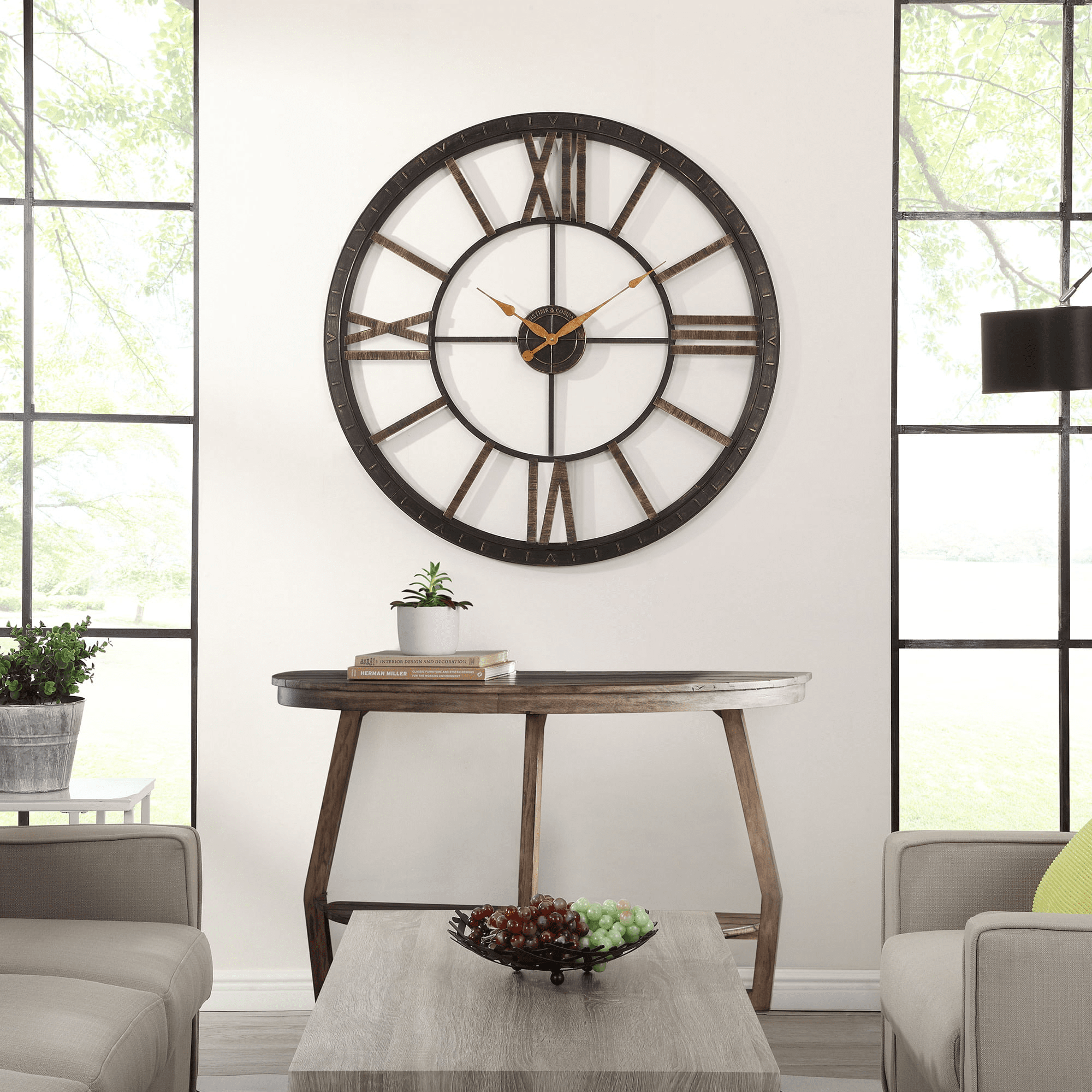 Nothing ties a room together better than a great clock, and the one you choose to place in your home should reflect your personality and style. We hear you. Make a big statement in any room with our firstime & co.® big time wall clock. This clock boasts a grandiose 40' diameter, making it the room’s focal point and allowing you to read the time with ease, even across the room. Featuring roman numerals as the quarter markers, an oil rubbed bronze finish for a timeless appeal and delicate gold hands, this oversized timepiece radiates simplistic elegance while adding a touch of sophistication to your home. Finding the right clock to suit your style has never been easier thanks to our wide range of firstime & co.® timekeeping solutions.