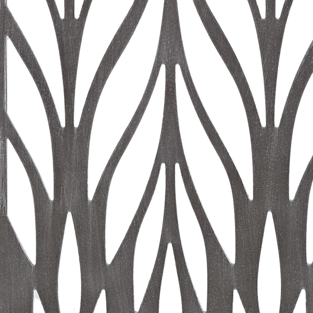 Dimensional wall art panel set with laser cut plume pattern in a grey luster finish