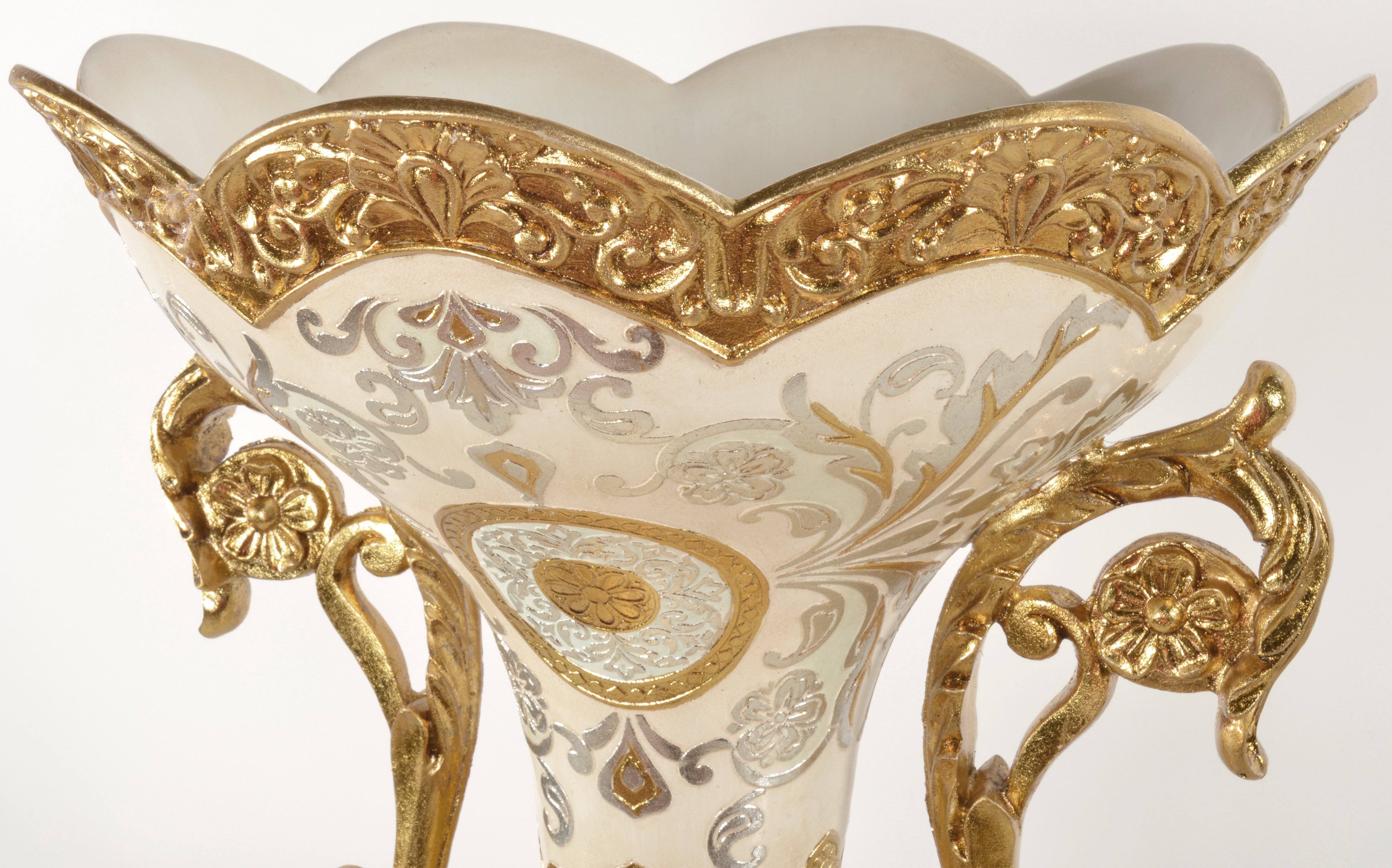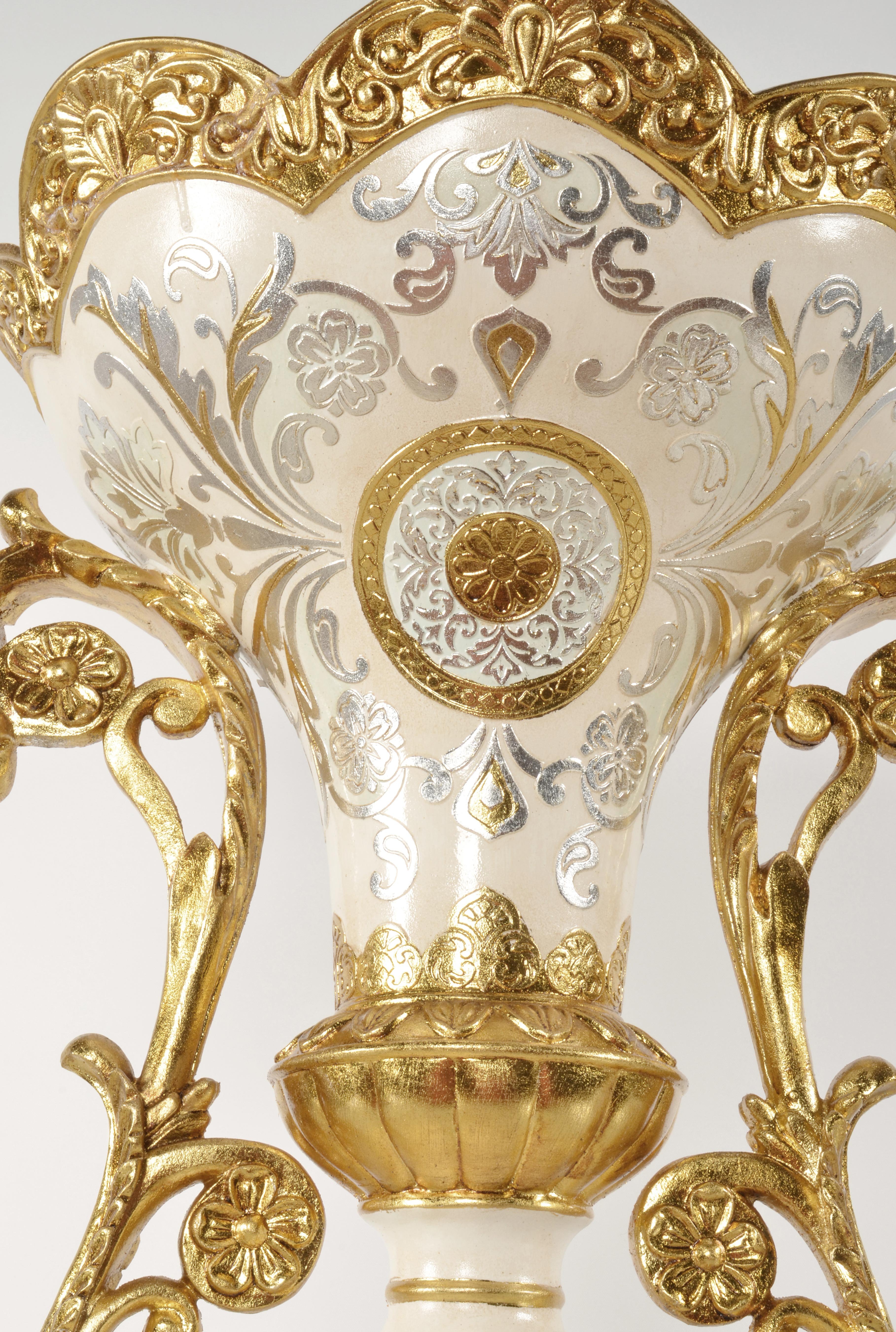The Celine Collection is one of the most beautiful traditional designed accessory groups. The Celine Major Presentation Urn on Pedestal measures 18.1 inches wide x 18.1 inches deep x 24.6 inches tall. The Hand finishing is elegant, offering a subtle contrast of white, blue, silver, and gold. Versatile as a centerpiece for an arrangement or as a decorative object. Sold separately but often ordered in pairs for balance or symmetry. Consider matching with other Celine Series items for an expanded display.