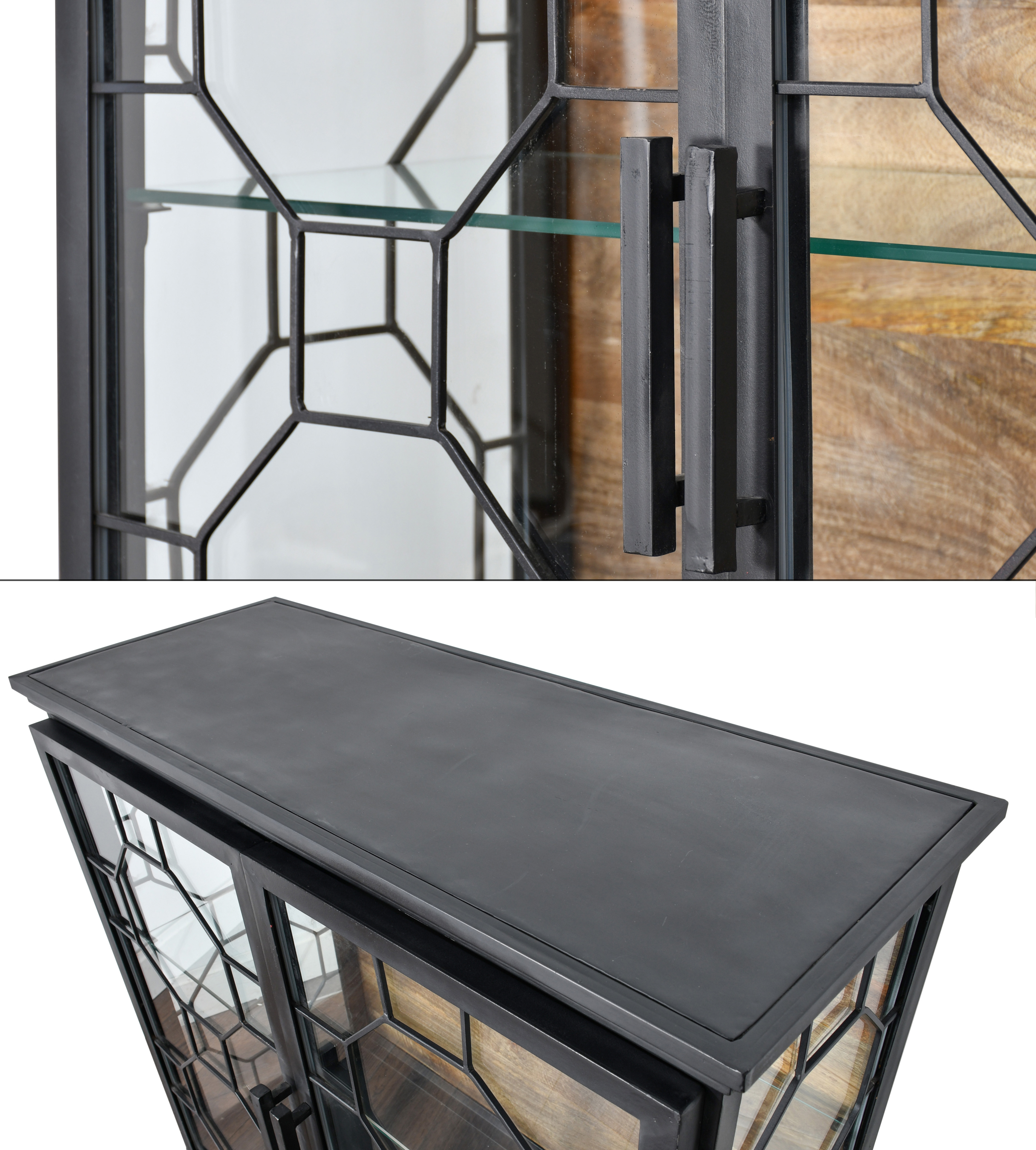 The Berkshire 2 Door Metal Display Shelf Collector's Cabinet 43 Inches is a very popular item. The style is a refined design void of unnecessary clutter. Furniture made beautiful in its purest form and function. 2 Doors open to a glass shelf offering 2 ample shelf positions for display. Hand Finished in Black with a contrasting back wooden panel. The Item is manufactured by specialist in Metal work from India for AFD Home Collection. India is world renowned for its talents in Metal crafting. Arrives Fully Assembled just place the glass shelf in place when positioned. Like the Berkshire Style ?? The Berkshire Design offers optional add on pieces for your consideration both in Taller and Wider sizes.