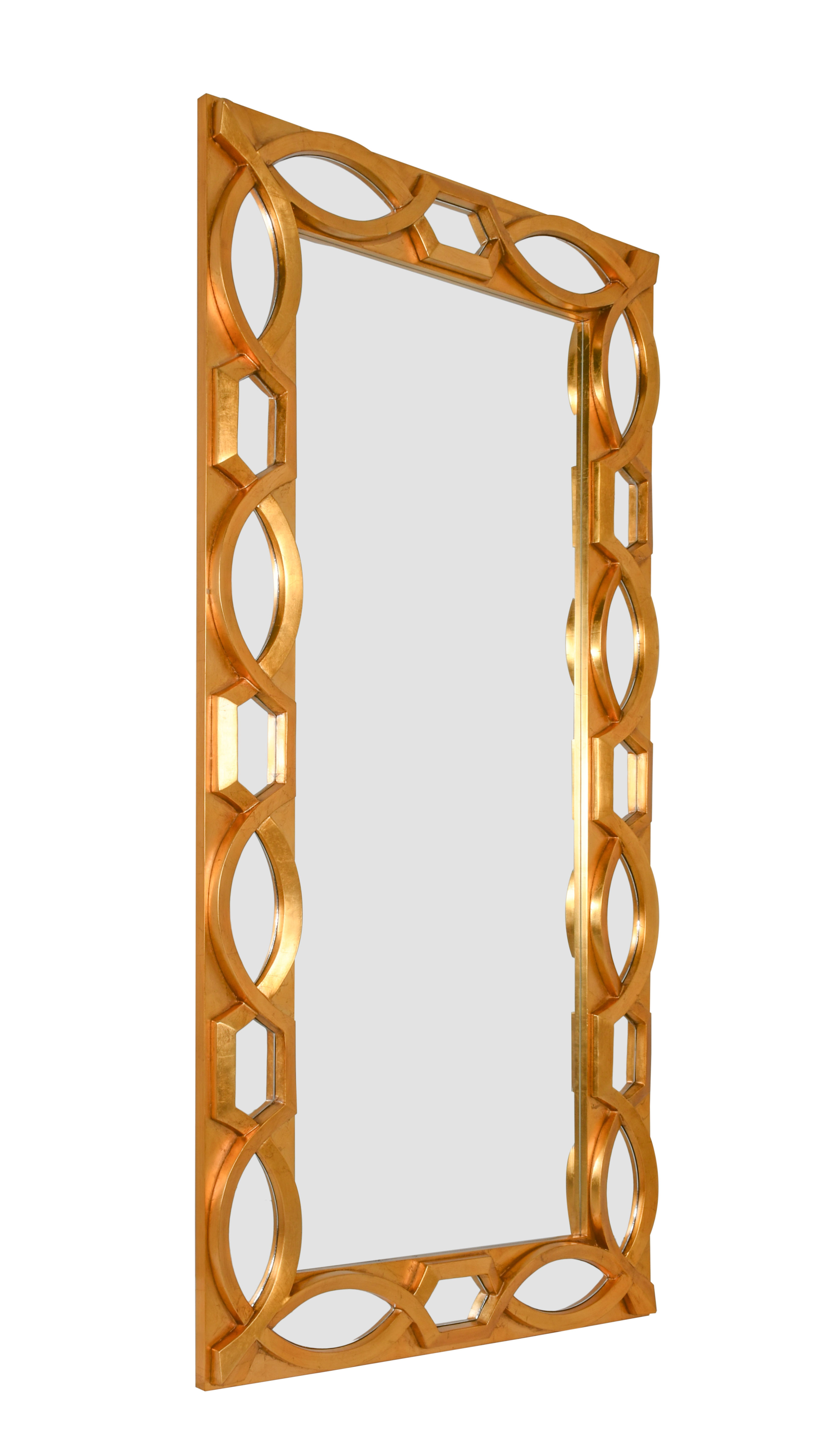 Measuring 38 inches in width by 77 inches in height, the Diamond Stack Leaner Wall Mirror brings depth and dimension to any setting. Reflections are more than just reflections—they bring spaces to life, infusing them with light and creating captivating focal points. While all mirrors serve a basic function, it's the style, design, and arrangement that truly inspire. The Diamond Stack mirror embodies simplicity and elegance, making it perfect for standalone use or as part of a gallery wall, where multiple mirrors can be stacked for a striking effect. The symbolic stacking of diamonds in an infinity pattern speaks to the eternal bond and commitment we all share. Each mirror is meticulously cast and finished by hand, with genuine gold or silver leaf covering the frame in vibrant jeweled colors. The natural cracking and separation between the application of each leaf sheet add authenticity to the hand-applied finishing, enhancing the mirror's unique character. Equipped with D rings attached to the back, this mirror is ready to hang vertically or horizontally but often leaned, offering glamorous designer style and versatile placement possibilities. Whether you opt for flashy gold or sleek silver, the Diamond Stack mirror adds a touch of contemporary sophistication to any space. Please note that mounting hardware is not included.