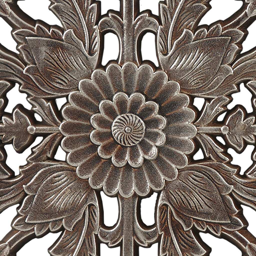 Lotus flower pattern in brown with silver distressing