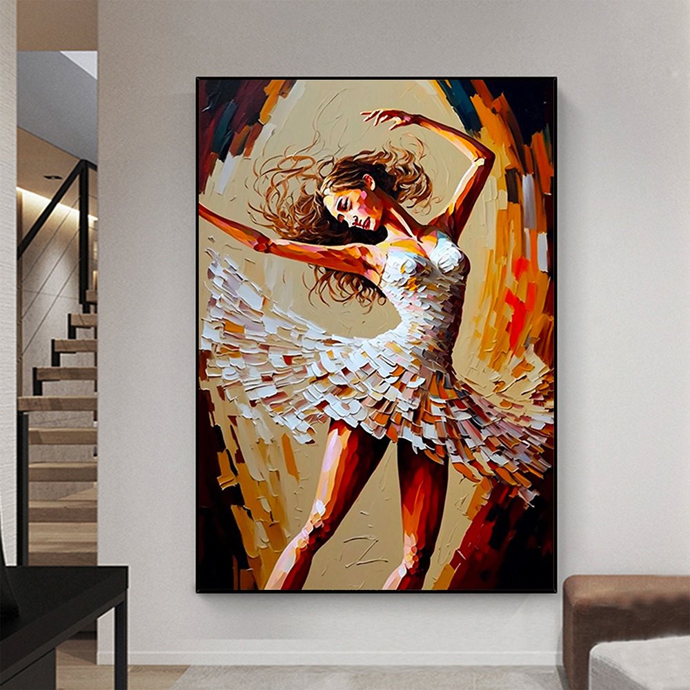 Hand Painted Oil Painting Abstract Dancer Oil Painting On Canvas Large Wall Art Original White Ballet Painting Boho Wall Decor Custom Painting Living
