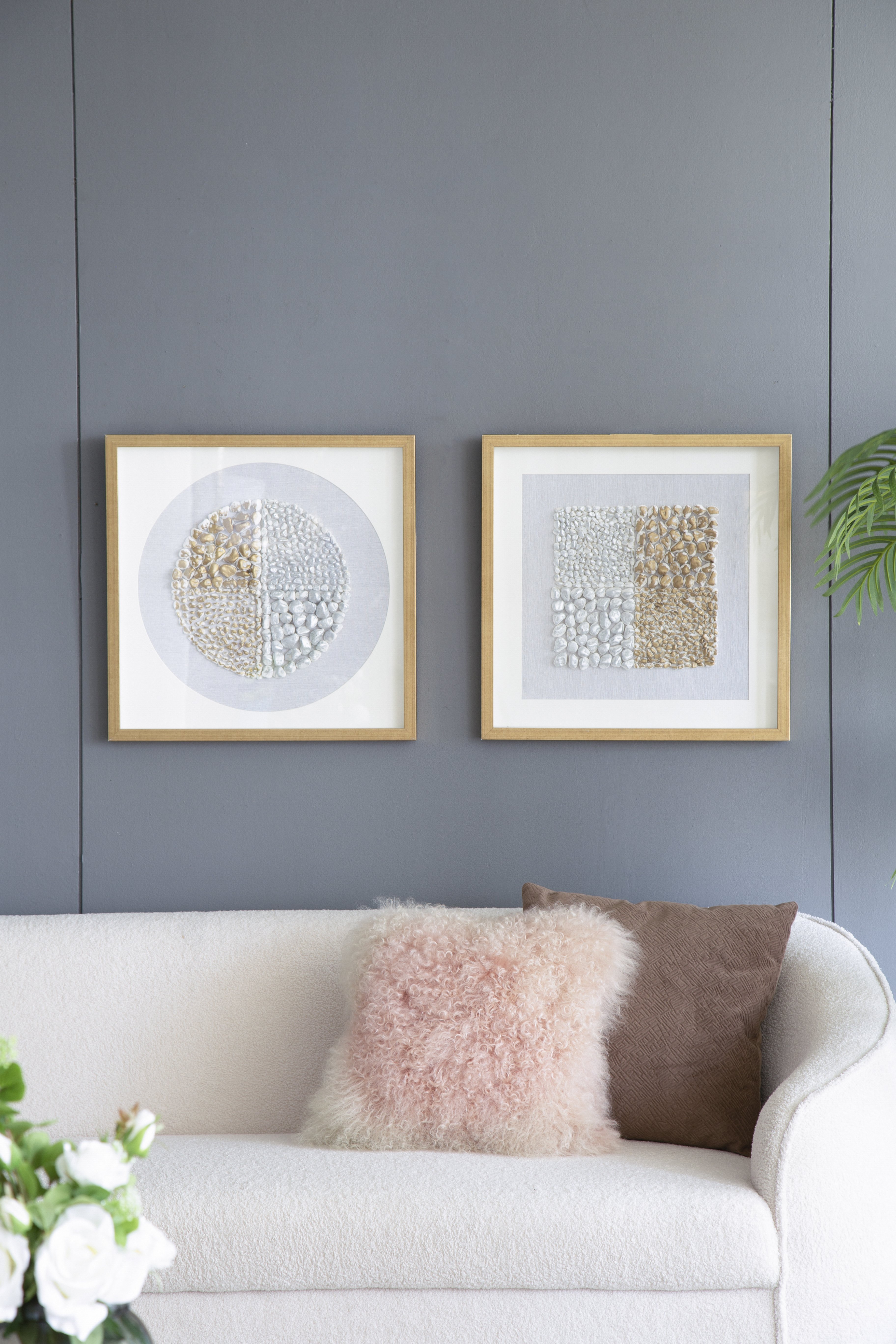 Bring a touch of modern elegance to any wall space, by adding this Set of 2 Aurelia Shadow Box Wall Decor. Featuring 2 uniquely design two-toned stone works, they create a new eye catching pattern to any dressing room or modern workspace.
